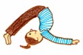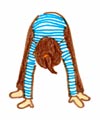 足を肩幅ぐらいに開き、前屈して腰の筋肉を伸ばします。